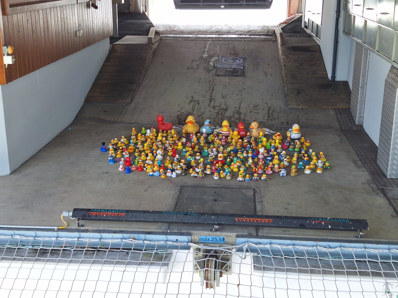 ^ Bei der Bergstation Klösterle I erwartet einen eine riesige Quietescheentenfamilie