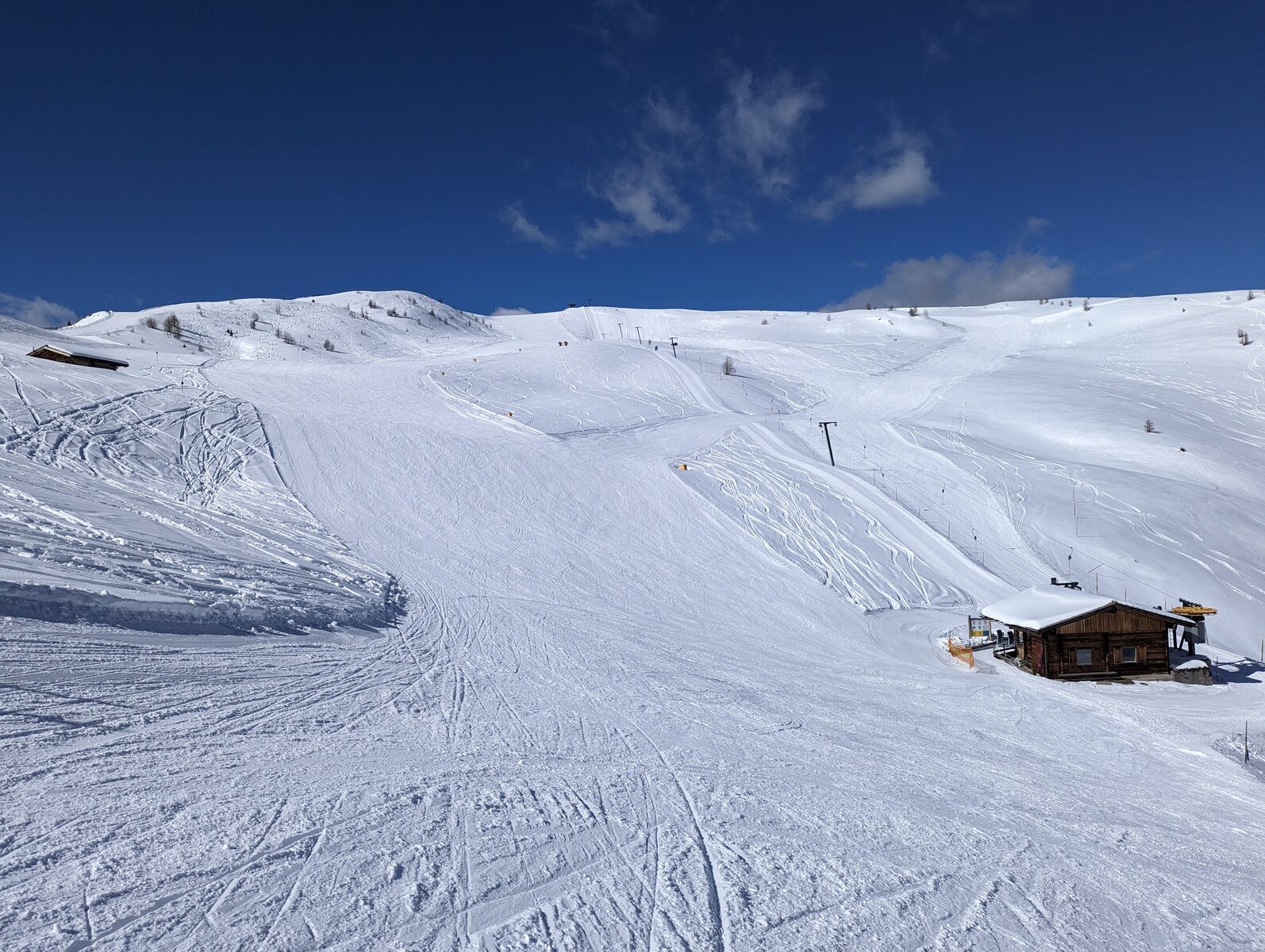 Nachdem ich morgens in Silian war ging es Mittags für etwas mehr als eine Stunde nach Kartisch. Wie immer konnte die sportliche Piste gefallen, sie war leicht sulzig und bis 12.15 Uhr waren nur 5 Spuren drin. Außer mir waren zunächst nur 2 Leute da, später kamen 3 weitere.