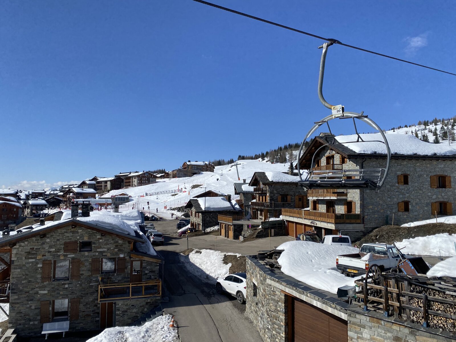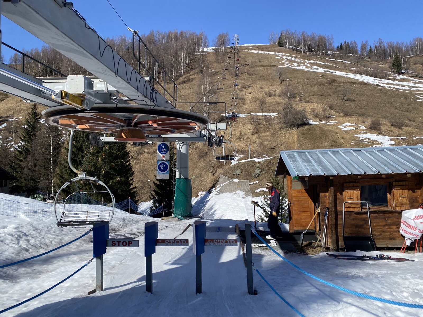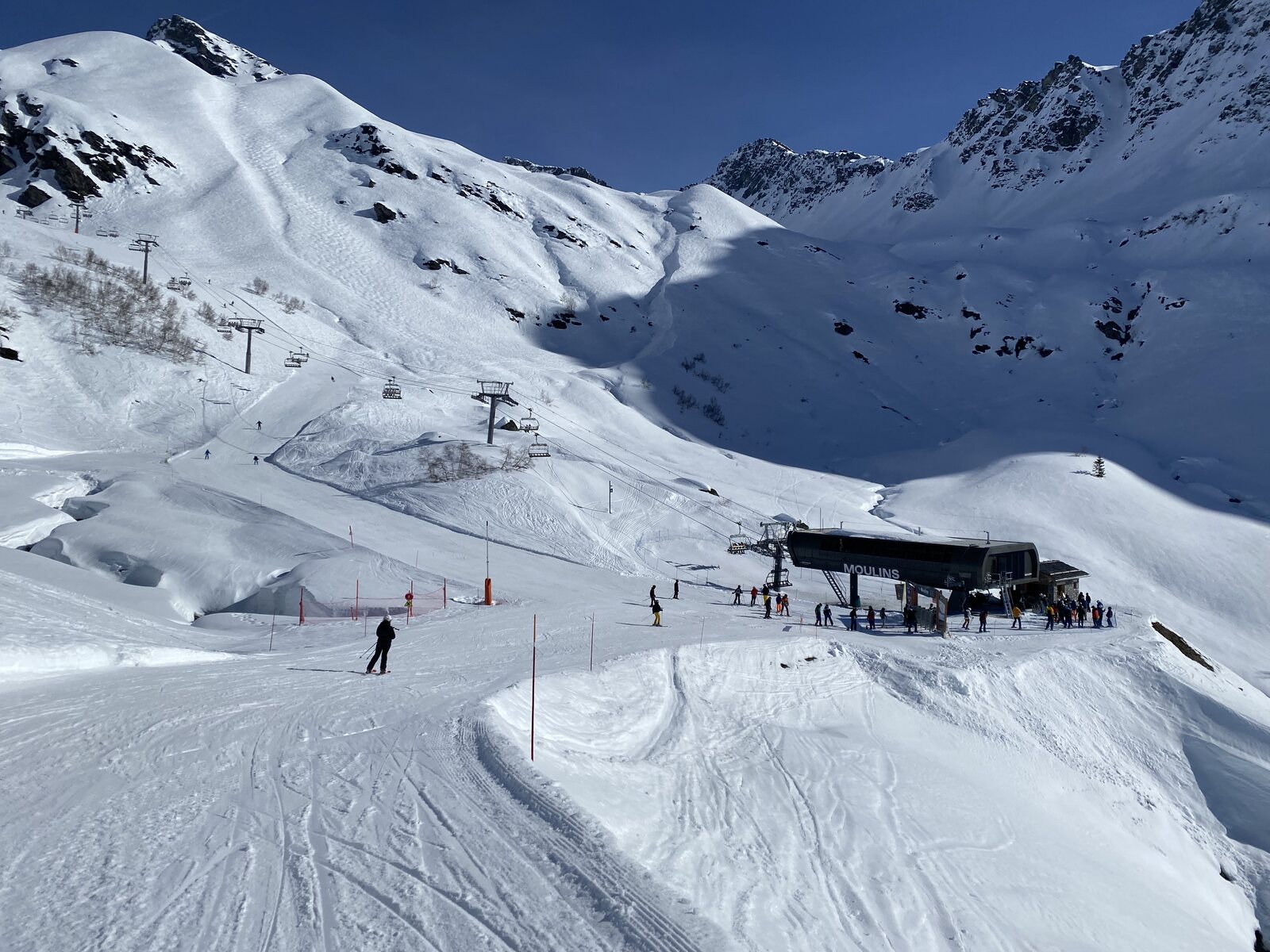 Sehr schön ist auch die erweiterte Abfahrt "Roc Noir" in Kombination mit "Marmottes", welche unten an einer alten 3er Krücke von Montaz Mautino endet. Dort ist es gefühlt schon Frühling. So konnten wir auch der lahme Fahrt mit der "Petit Bois" Sessel geniessen...
