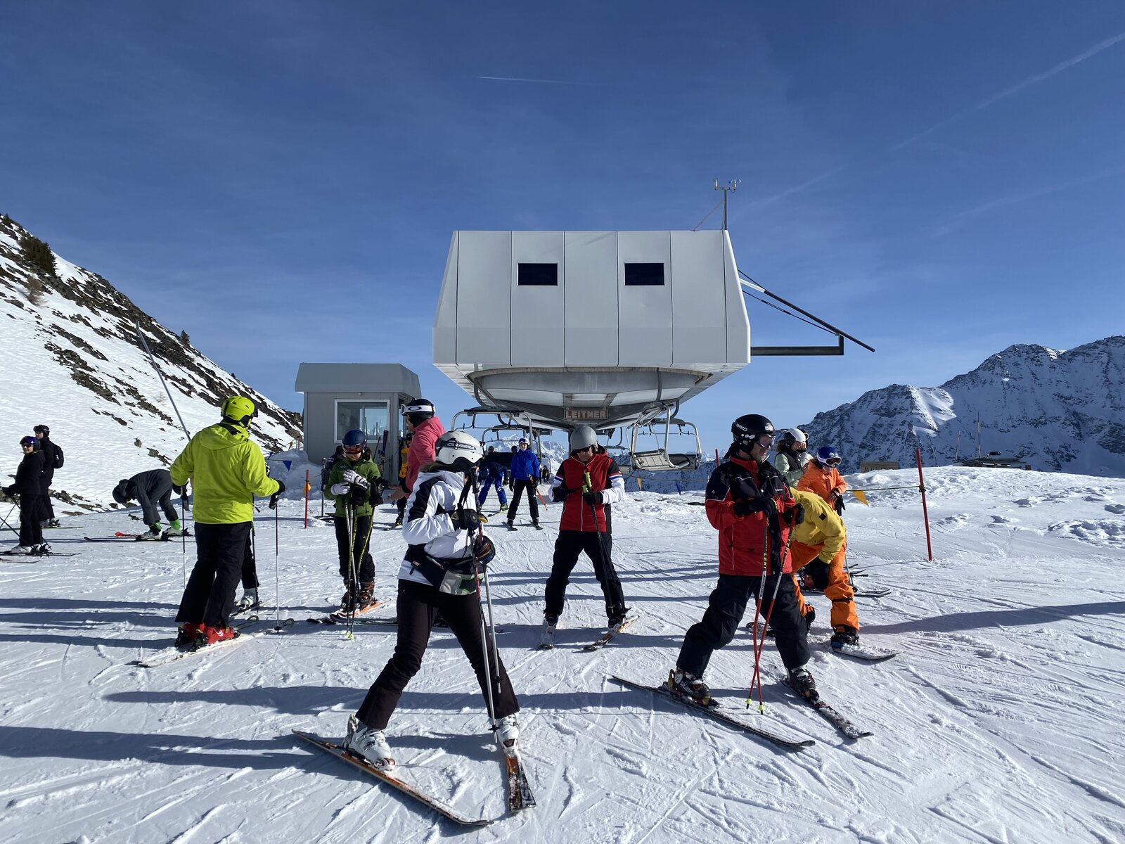 Da an der 6-KSB "Fort" eine kurze Schlange stand, fuhren wir weiter zum 6-KSB "Moules", welche in zwei Etappen auf dem Mont Valaisan (2800 m) führt. Der höchste Punkt im Skigebiet.
