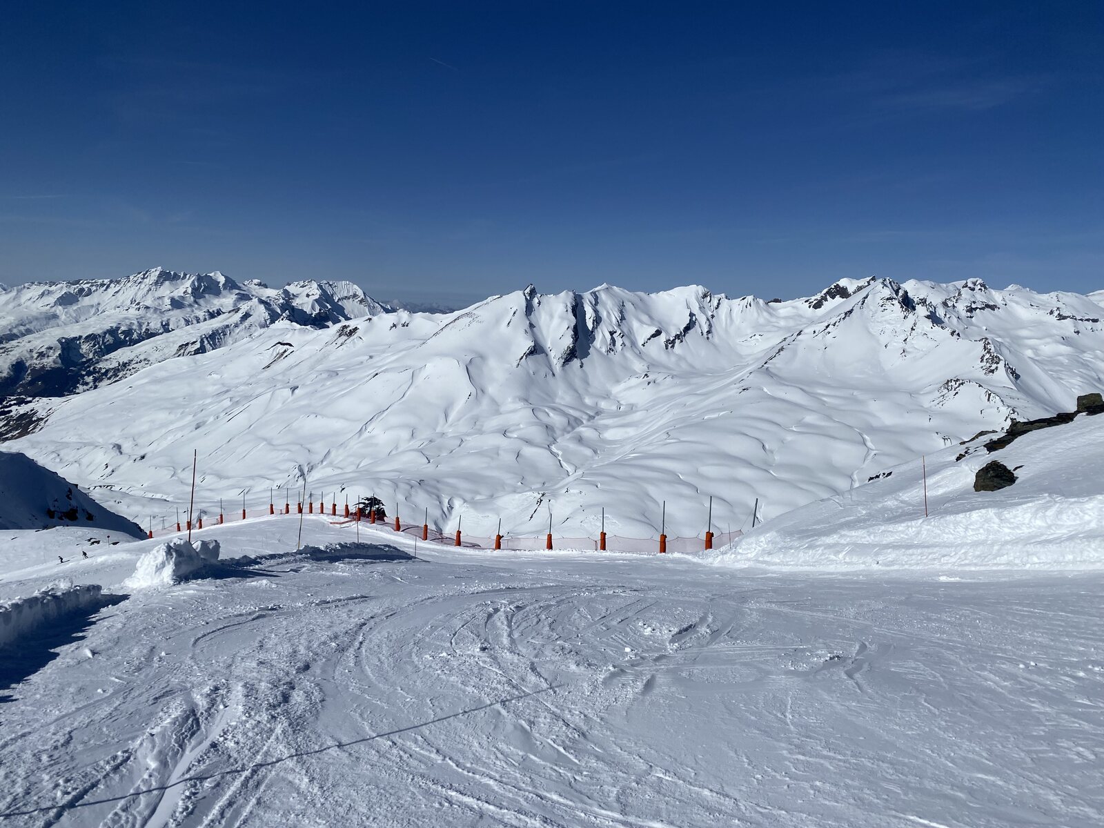Letztes Bild vor der lange Abfahrt über Piste 18 und 6 nach La Thuile. Von oben gesehen rechts aussen rum.