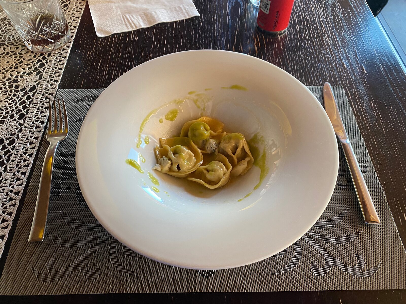 Und nach lange warten, kam dann auch endlich unseres essen... Euhhhh... naja, vier Tortellini teilchen. Autsch.